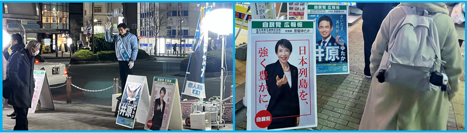 西口では、他の陣営が宣伝活動をしていました。寒い冬の熱い選挙戦は終盤となり、日本列島全体で繰り広げられている「民主主義のおまつり」は、フィナーレに向かって、白熱化しています。(取材担当:金雨薇)