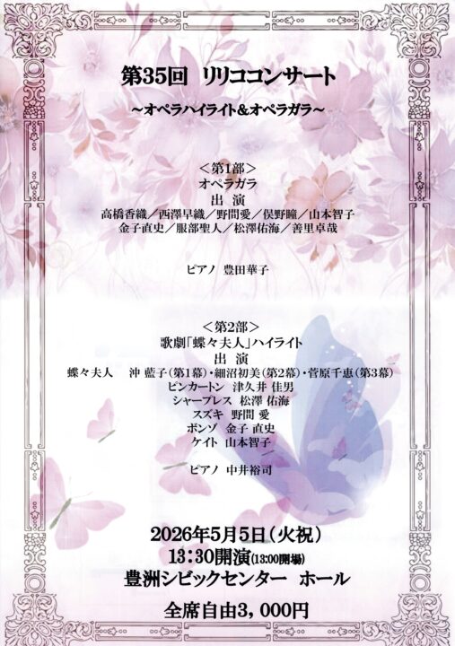 【文芸局】さいたま市文化振興事業団SaCLaアーツ登録のオペラ歌手として活躍している細沼初美さん(見沼区)が、5月5日に豊洲シビックセンターで開催されるコンサートの演目「歌劇 蝶々夫人」に出演されます。細沼さんは、地域貢献活動のボランティア活動にも熱心で、さる3月8日には、さいたま市市民活動サポートセンターフェスティバルでのステージ発表でも「蝶々夫人」の一節を披露して、市民から大好評を得ました。細沼さんは「とかくオペラと言うと敷居が高く見られがちですが、オペラには笑いあり涙ありと多彩な楽しみが満載です。舞台に字幕が出ますので、歌の意味がよく伝わります。いちどオペラに触れてみて下さい。」と語っています。